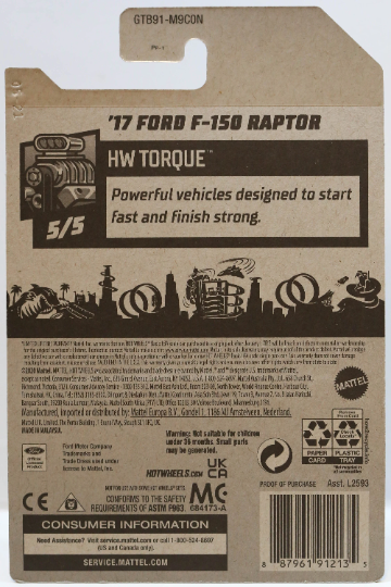Hot Wheels '17 Ford F-150 Raptor HW Torque GTB91 - Plus (+) a Bonus Hot Wheel