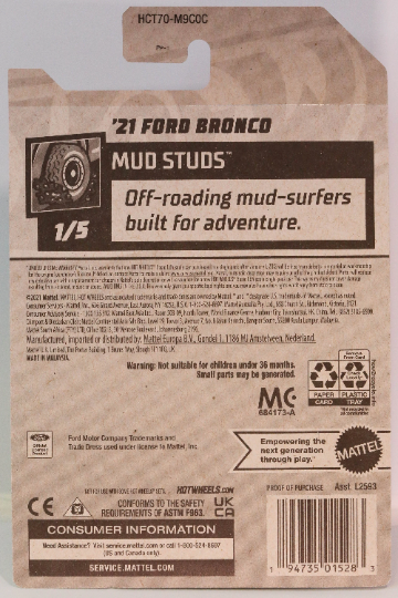 Hot Wheels '21 Ford Bronco HW Mud Studs HCT70 - Plus (+) a Bonus Hot Wheel