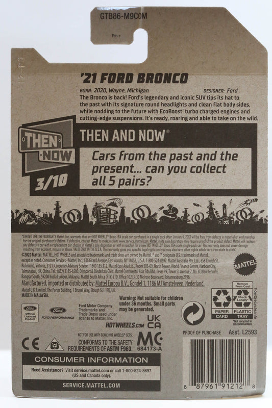 Hot Wheels '21 Ford Bronco 90 HW Then and Now GTB86 - Plus (+) a Bonus Hot Wheel