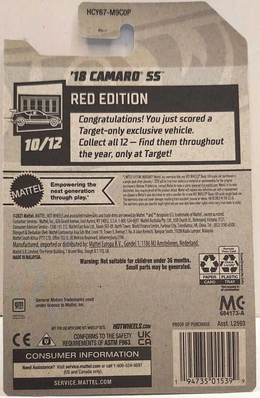 Hot Wheels '18 Camaro SS HW Red Edition HCY67 - Target Exclusive