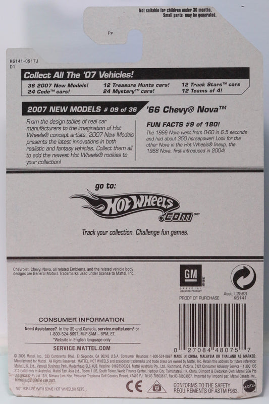 Vintage Hot Wheels '66 Chevy Nova - 2007 New Models - K6141
