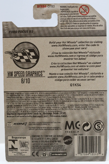 Hot Wheels Ford Focus RS HW Speed Graphics DTX64 - Plus (+) a Bonus Hot Wheel - Rare and HTF
