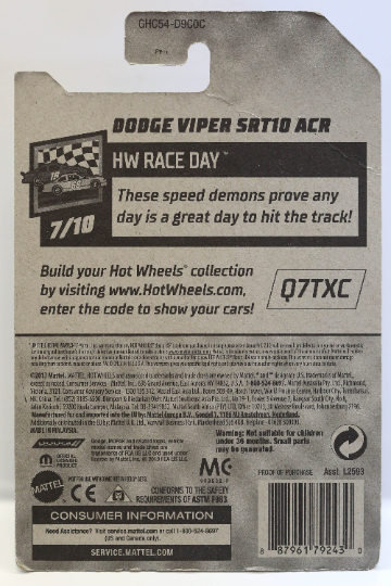 Hot Wheels Dodge Viper SRT10 ACR HW Race Day GHC54 - Plus (+) a Bonus Hot Wheel