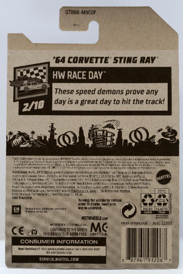 Hot Wheels '64 Corvette Sting Ray HW Race Day GTB88 - Plus (+) a Bonus Hot Wheel