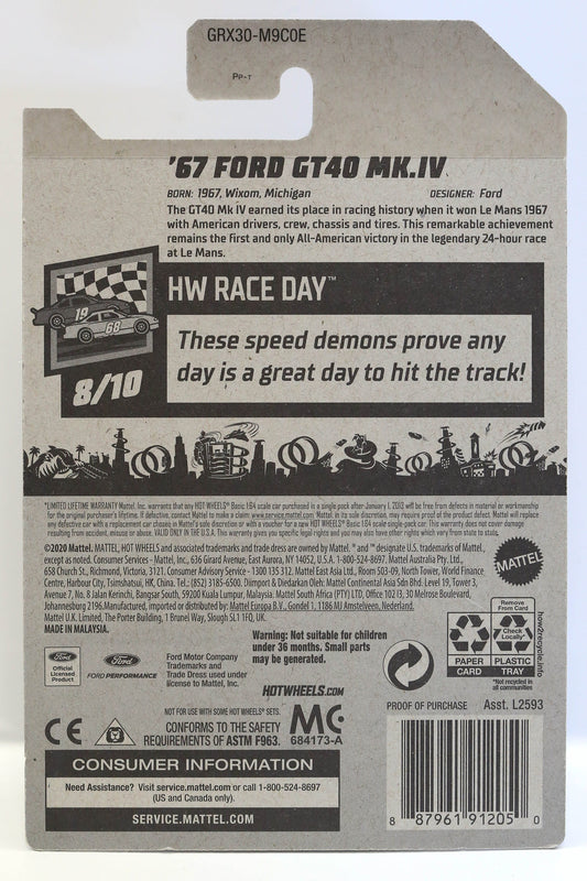 Hot Wheels '67 Ford GT40 MK.IV HW Race Day GRX30 - Plus (+) a Bonus Hot Wheel