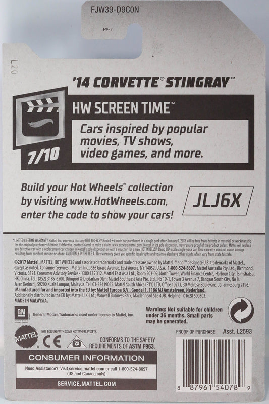 Hot Wheels '14 Corvette Stingray Barbie HW Screen Time FJW39 - 50th Anniversary Edition - Plus (+) a Bonus Hot Wheel - Rare and VHTF