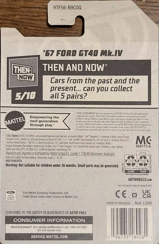 Hot Wheels '67 Ford GT40 Mk. IV HW Then and Now HTF56 - ZAMAC #011 - Walmart Exclusive