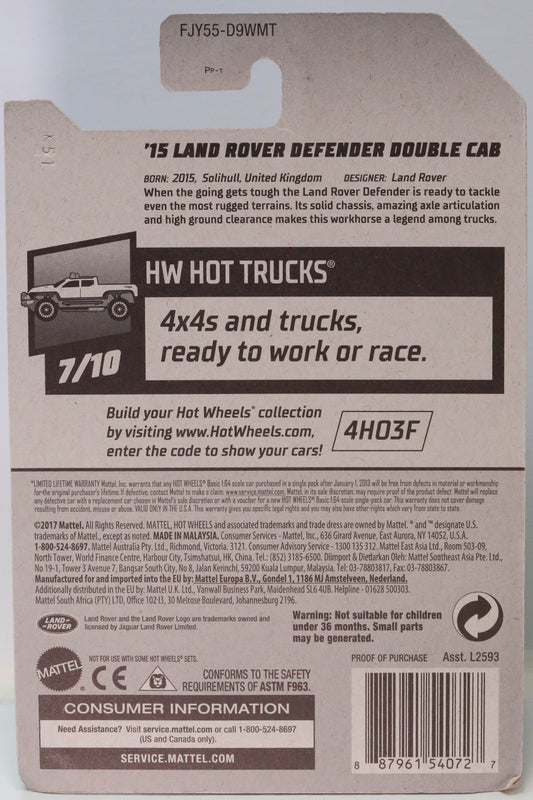 Hot Wheels '15 Land Rover Defender Double Cab HW Hot Trucks FJY55-WMT - 2018 Hot Wheels Month Walmart Exclusive
