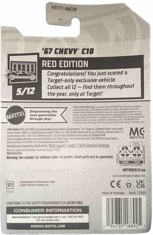 Hot Wheels '67 Chevy C10 HW Red Edition HTF77 - Target Exclusive