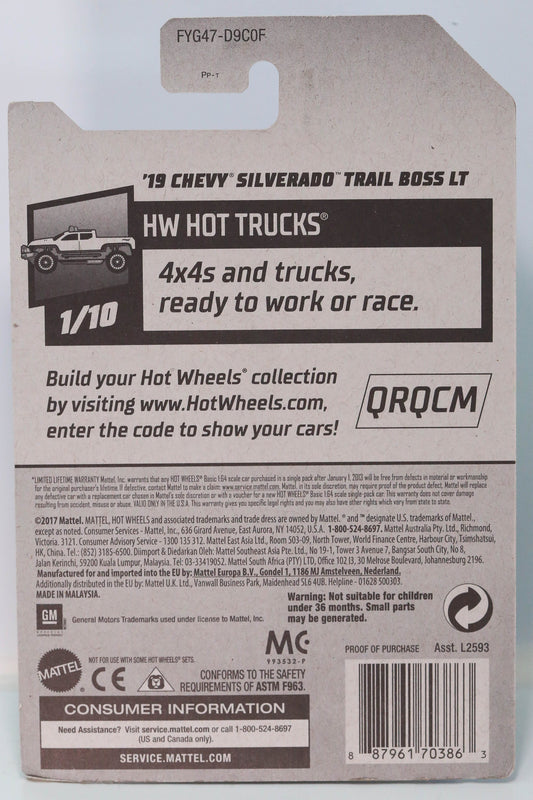 Hot Wheels '19 Chevy Silverado Trail Boss LT Pickup HW Hot Trucks FYG47 - Kmart Exclusive - Plus (+) a Bonus Hot Wheel - Rare