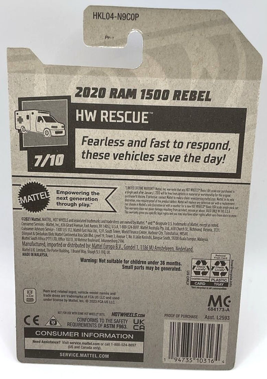 Hot Wheels 2020 Ram 1500 Rebel HW Rescue HKL04 - Treasure Hunt - Plus (+) a Bonus Hot Wheel