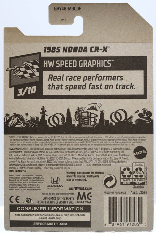 Hot Wheels 1985 Honda CR-X HW Gráficos de velocidad GRY46