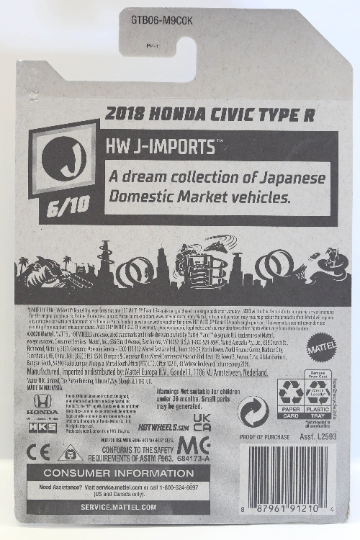Hot Wheels 2018 Honda Civic Type R HW J-Imports GTB06