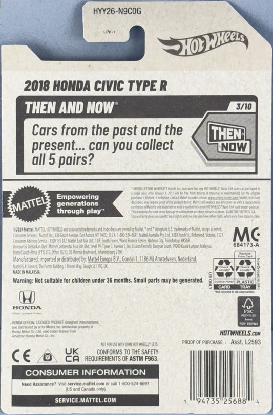 Hot Wheels 2018 Honda Civic Type R JJH88