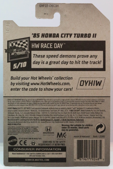 Hot Wheels '85 Honda City Turbo II HW Race Day GHF22 - Más (+) un Hot Wheel de bonificación