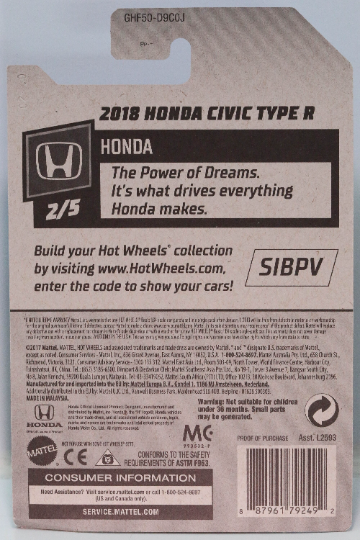 Hot Wheels 2018 Honda Civic Type R HW Honda GHF50 - Más (+) un Hot Wheel de bonificación