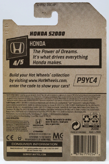Hot Wheels Honda S2000 HW Honda GHF82 - HTF raro