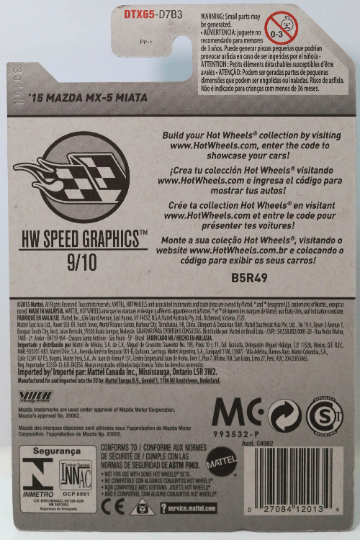 Hot Wheels '15 Mazda MX-5 Miata HW Speed Graphics DTX65 - Más (+) un Hot Wheel de bonificación