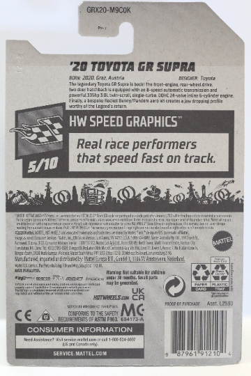 Toyota GR Supra HW de Hot Wheels '20 con gráficos de velocidad GRX20
