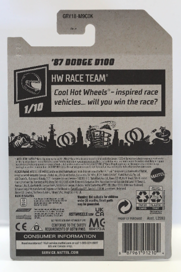 Hot Wheels '87 Dodge D100 HW Race Team GRY18 - Plus (+) une Hot Wheel en bonus